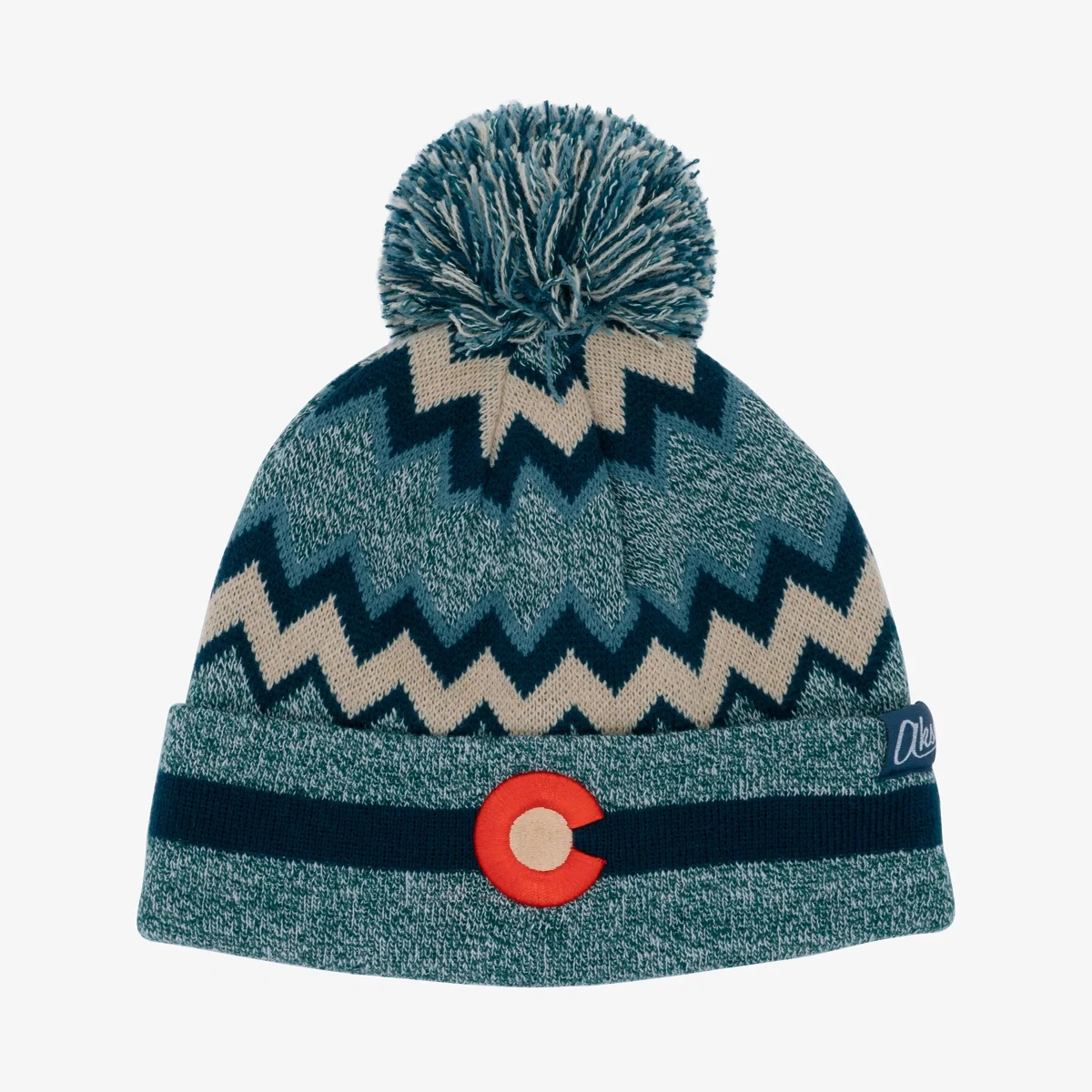 Our own hand knitted Colorado flag beanie with a cool zigzag patterns, while designed to provide comfort and warmth!