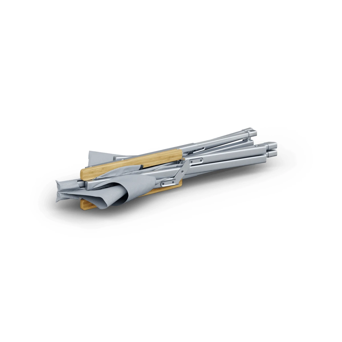 - Made from heavy-duty 600D fabric, lightweight aluminum, and beechwood armrests