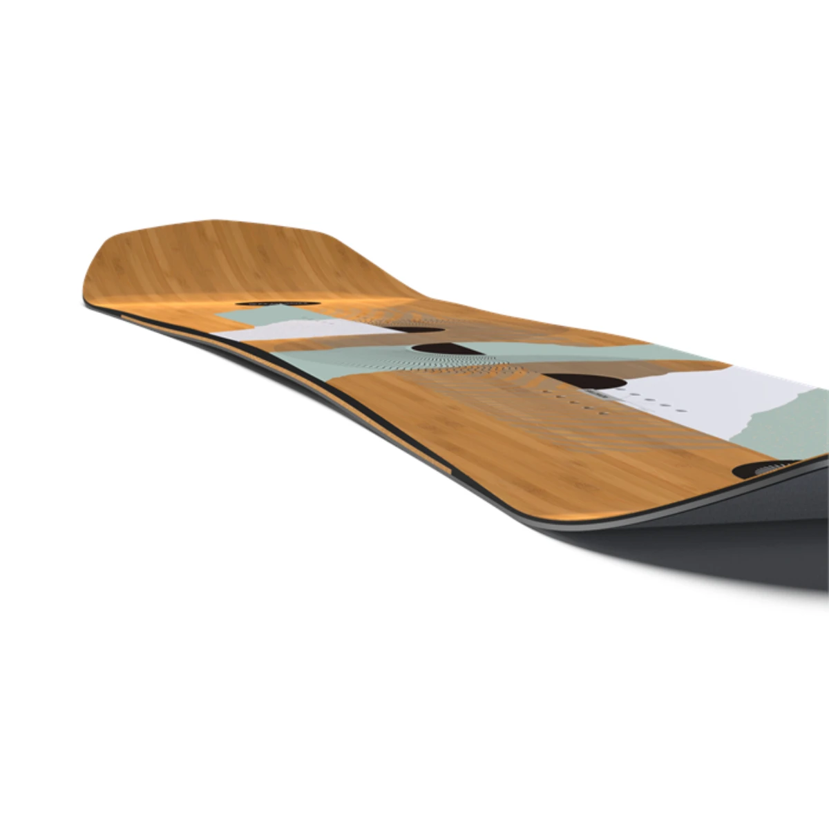 A women’s specific quiver killer blending our most popular powder and freestyle creations. Rock Out Camber delivers versatility in all conditions freestyle, while the directional twin shape provides added buoyancy in deep snow. ABC Wrapper design substitutes traditional materials for bamboo, fusing sustainability and innovation for a lively board.
