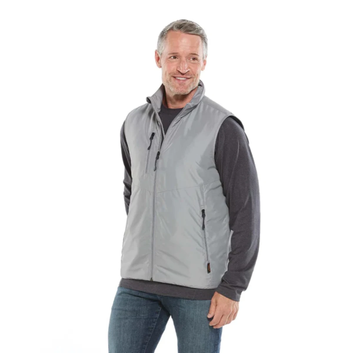 - Smooth shell  vest with interior Thermolite quilted lining for warmth